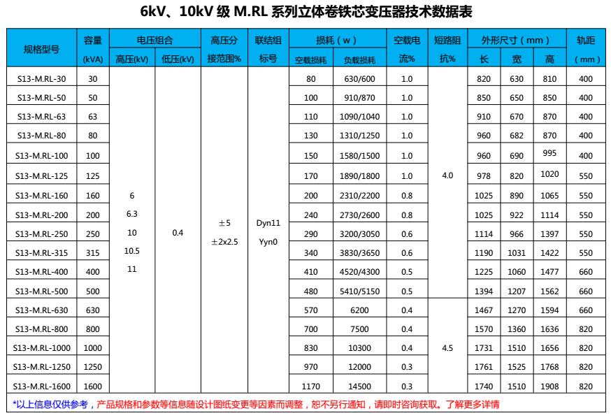 S13—M.RL系列10kV级立体卷铁心变压器主要适用于工厂、学校、高层建筑、商业中心、机场等,可作为城市电网的输配电用。